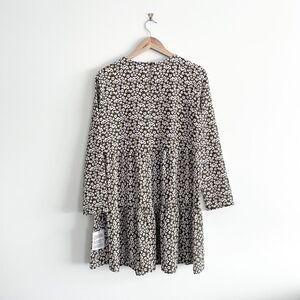 ASOS Dress All-Over Brown Floral Print Round Neck Long Sleeves Women's 10 NWT