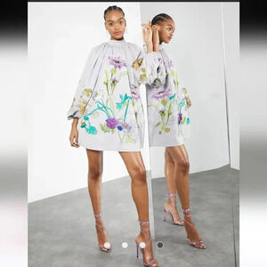 ASOS EDITION embroidered mini trapeze dress in dove gray