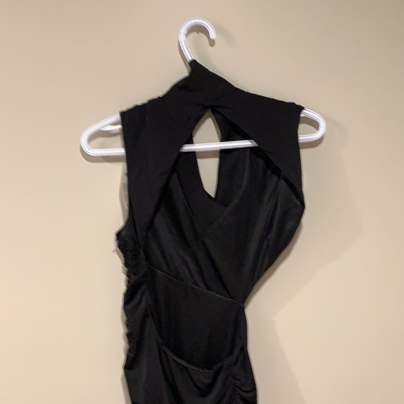New with tags ASOS asymmetrically ruched “little black dress” with open back in women’s size six.
