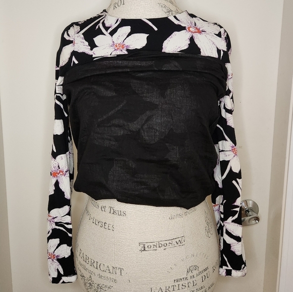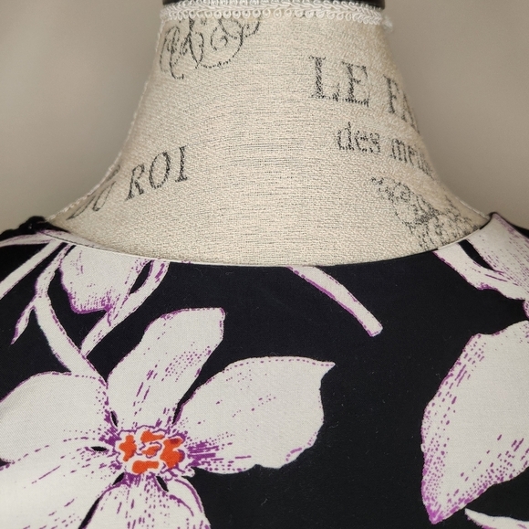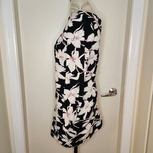 Black with large White Purple & Orange Orchid blossom Floral Print Longsleeve Crewneck Shift Dress, by 1987 Vero Moda from ASOS.