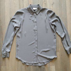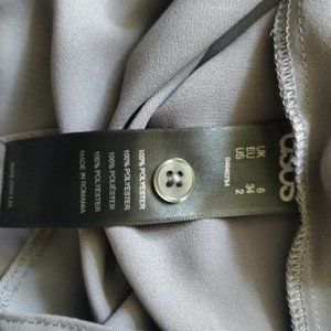 Grey button up blouse from ASOS. Hidden placket collar, buttons on cuffs, drapey lightweight material looks great tucked or untucked. This blouse in excellent condition with no flaws. Size 2/small. From a smoke and pet free home.