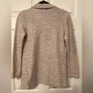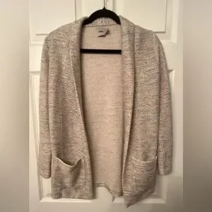 Cardigan blazer style sweater. Multi coloured thread. Super soft. Excellent condition. Two large front pockets. Open front style, no buttons.