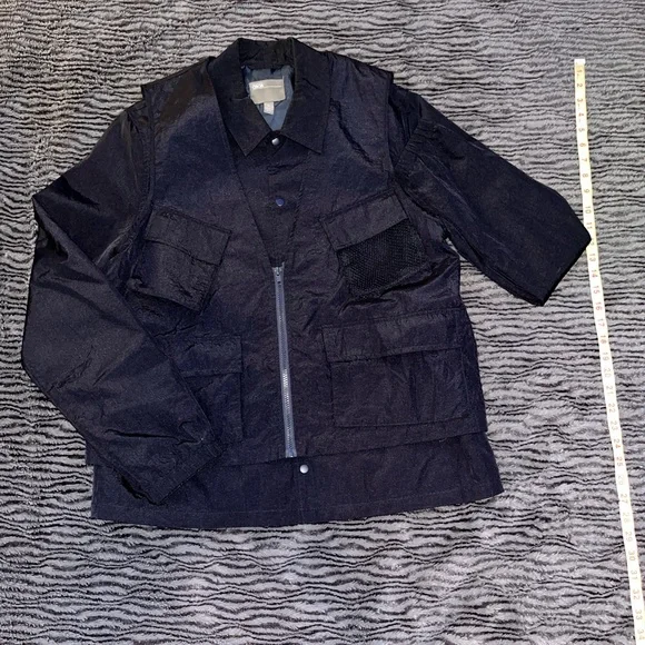 Dark Navy jacket with front zipper and multiple pockets. Lightweight and versatile design. Can also be worn with or without the vest.