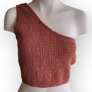 ASOS Summer Of Diane x Vici one-shoulder crinkly top in terracotta NWT size L