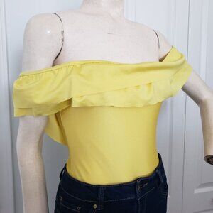 ASOS Swim Double Fri Size 6 Yellow One piece swimsuit with ruffles off shoulder