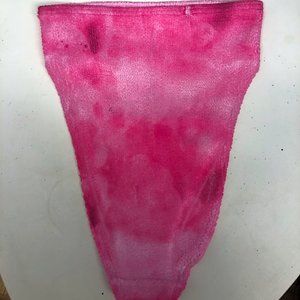 Super-stretch one-size bikini from ASOS. Bandeau top has spaghetti strap support and the high-waist bottoms feature ultra-high cut thighs. Super cute hot pink tie-dye print. Totally new and unworn with original packaging and tags.