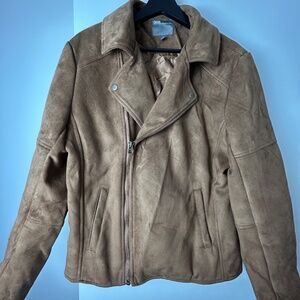 Selling a stylish ASOS jacket in a tan vegan suede. It's a size medium and in great condition, ready to add classic style to your wardrobe
