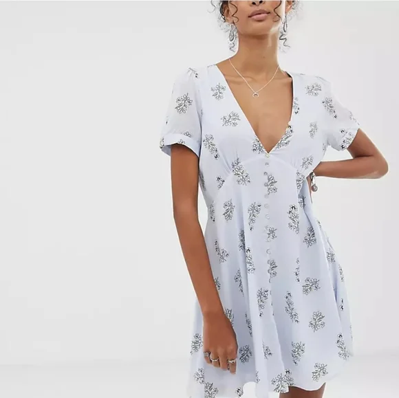 Light Blue Floral Skater Dress by Chelsea × ASOS
