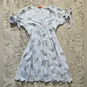 Floral Tea Dress With Tie Sleeve Detail