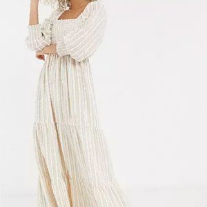 ASOS DESIGN shirred bustier tiered maxi dress in seersucker stripe. Brand new. Size 8 US.