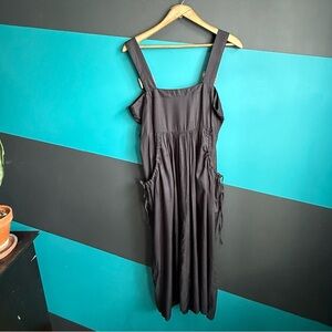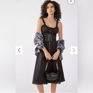 ASOS UO Azelia Button Midi Dress Black Buttoned Spaghetti Strap Sundress Size 6