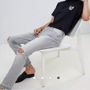 Slightly slimmer through the leg than an average boyfriend fit, smaller than an usual size 12