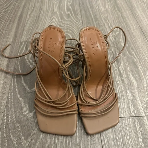 ASOS DESIGN Nina Strappy Tie High Heel Sandals | Beige | US 5 Wide