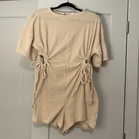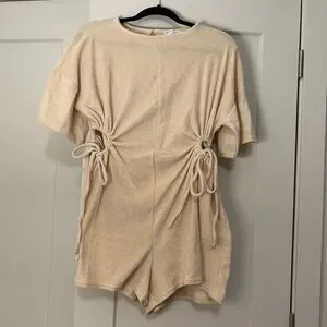 Beige terry romper with cutouts/ties at waist! (Never worn)