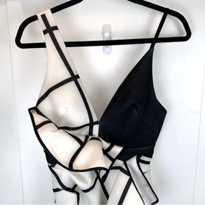 ASOS sz 2 Design Black White Ruffle Grid Check Waterfall Bodycon Midi Dress