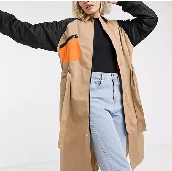 ASOS X COLLISON hybrid bomber trench coat in Stone khaki