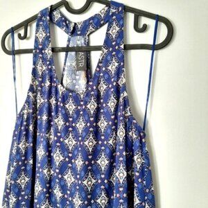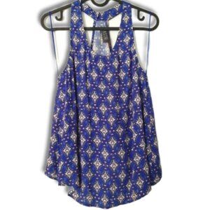 ASTR Anthropologie Split Back Scoop Neck Blue Patterned Tank Top Sz XS