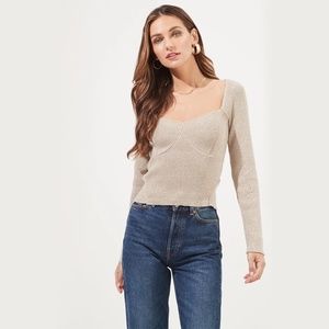 The Fletcher Sweater features a ribbed knit construction with a sweetheart neckline, ribbed bustier detailing and long sleeves.