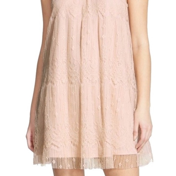 ASTR Floral Lace Overlay Shift Dress Cutaway Shoulders