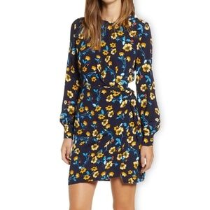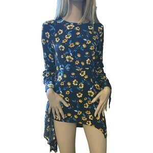 ASTR Nordstroms Vivid Floral Dress Asymmetrical Hemline Long Sleeve Versatile