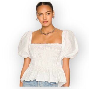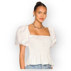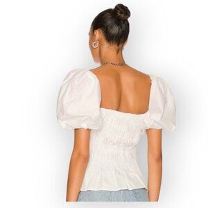 ASTR Savina Crisp White Peplum Blouse, Bubble Sleeve M