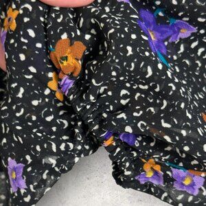 ASTR The Label Shirred Puff Sleeve Sweetheart Neck Floral Smocked Long Sleeve Top in Women's Size Medium and Black Purple Floral Print. This flattering top features a perfect mix of leopard and florals for an unexpected pattern! V neckline descends to a wrap front and fitted bodice. Long puff sleeves and shirred detailing on the back. Side zipper closure. Poly. Lined with poly and spandex. Hand wash. Style AT15780. Made in Vietnam. Retails for $88 USD (approximately $123 CAD). Very good pre-owned condition. No visible flaws.