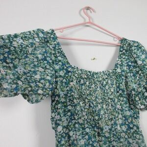 Keywords: ASTR The Label dress, floral midi dress, puff sleeve dress, smocked dress, green floral dress, boho dress, bohemian dress, summer dress, spring dress, casual dress, party dress, midi dress, floral print, size L, new with tags