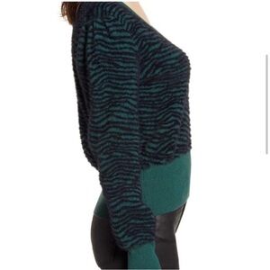 ASTR the label Hunter Green and Black Fuzzy Zebra Print Sweater