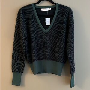 ASTR THE LABEL Green Zebra Print V-Neck Sweater size medium