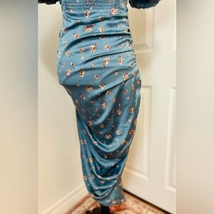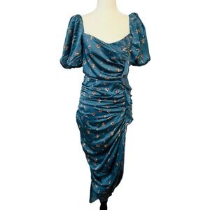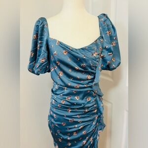 ASTR The Label Elegant Blue Floral Puff Sleeve Fitted Dress Women's Medium