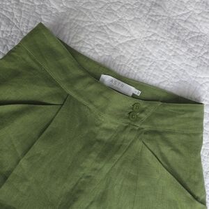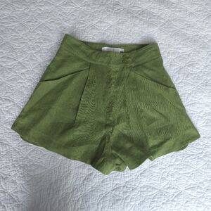 ASTR The Label Kerrigan Green Linen Pleated Asymmetrical High Rise Shorts