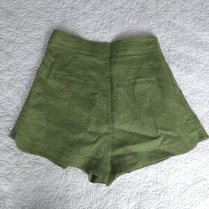ASTR The Label Kerrigan Green Linen Pleated Asymmetrical High Rise Shorts