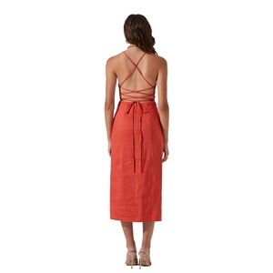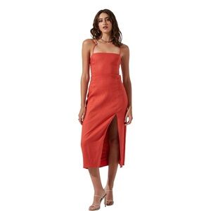 Turn heads with this stunning ASTR the Label Brayden Midi Dress in black. Featuring a square neckline, open-back design with lace-up ties, and a front slit, this dress is both timeless and trendy. Perfect for formal events, dinner dates, or any occasion where you want to feel effortlessly chic.