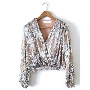 ASTR the Label Primadonna Sequin Top / Small / Champagne Surplice Deep V Holiday