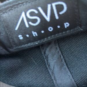 Sleek black cap featuring white ASVP Shop embroidery. Ideal for everyday style.