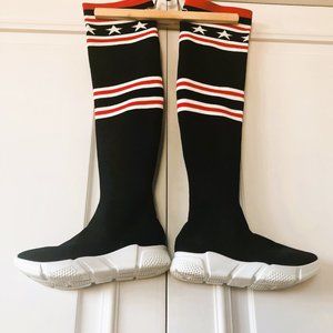 ATALINA Thigh-High Knit-Shaft Sock Sneaker Boots - Euro Size 36 (US-CA Size 6)