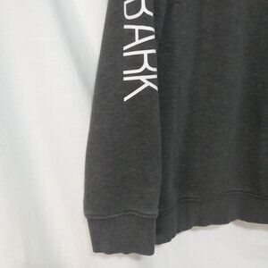 This dark zip-up hoodie features a vibrant dog graphic in a rainbow gradient on the chest and a bold vertical Urban Bark print on one sleeve