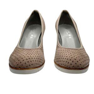 ATELIERS MADE IN ITALY TAUPE PERFORATED SUEDE TESLA PUMPS