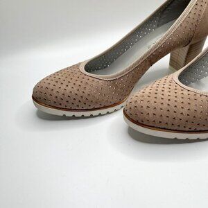 ATELIERS MADE IN ITALY TAUPE PERFORATED SUEDE TESLA PUMPS - 8