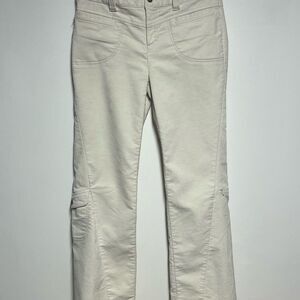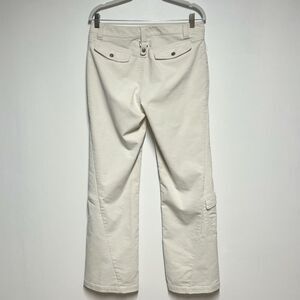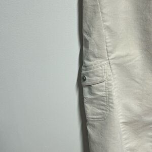 Elevate your wardrobe with these stylish Athleta pants in a beautiful bone color. Made from Corduroy these pants are perfect for travel and casual occasions. Featuring a zip and snap closure, these cargo pants come in a women's size 10 and are machine washable. The Athleta brand is known for its high-quality garments, and these pants are no exception. Whether you're running errands or exploring a new city, these pants will keep you looking stylish and feeling comfortable.