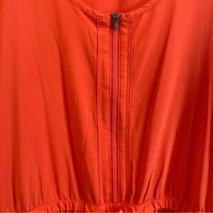 ATHLETA Expedition Dress Flame Orange Shorts Quick Dry Zipper Pockets Dress. The dress has sun protection (UPF 50), is wrinkle resistant and made out of a quick-drying, recycled nylon fabric. Athleta suggests one can hike, climb, or “explore the trail” in this dress. Built in shorts makes this dress comfortable and functional. Drawstring to cinch you in and pockets that are super functional. The orange colour adds a pop of colour to your wardrobe.