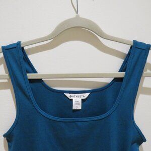 ATHLETA Signature Rib Square Neck Crop Tank Top Coastal Teal Stretch Casual NWT