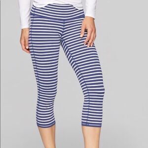 ATHLETA Striped Yoga Capri Leggings Navy Blue White XS