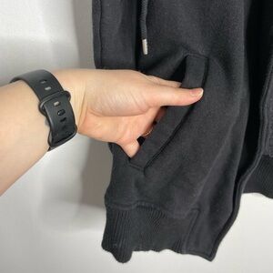 In good condition. 86% cotton 14% polyester. Ribbed funnel style snaps collar. Very oversized fit. Perfect to though on after the gym. Side pockets. Yoga, gym wear. Measure lay flat: shoulder 16,5'' bust 21'' length 27'' sleeve length 24,5''.