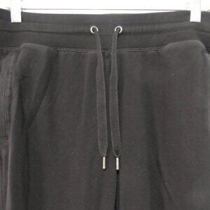Comfortable black jogger sweatpants with an adjustable drawstring waist and ribbed cuffs