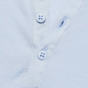 This long-sleeved semi-sheer henley is upgraded with a ribbed finish.