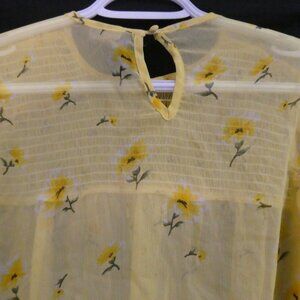 Brighten up your wardrobe with this delightful yellow blouse featuring a charming floral print