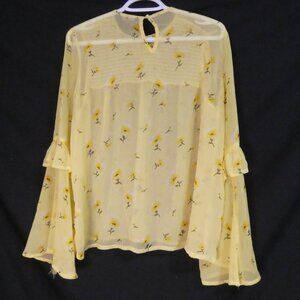 ATMOSPHERE | size 10 | Yellow Floral Print Bell Sleeve Blouse | Back Button