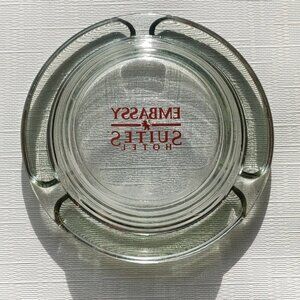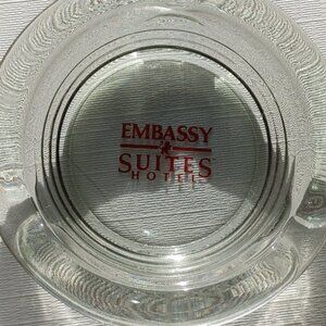 ATTRACTIVE Embassy Suites Hotel Clear Round Ashtray 3 Notch Bubbled Glass