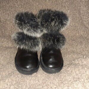 AUABP-Gracie-Black Leather Boots-Sheepskin Lining-Fox Fur Trim-Size 5-Excellent